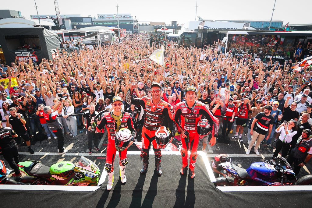 Finalizan dos semanas de vértigo con la consecución del Round 9 Acerbis Italian Round en Cremona y del Round 10 Tissot Aragón Round en Alcañiz, dos eventos consecutivos en los que el equipo de SBK demostró una vez más su compromiso y capacidad para afrontar retos. Un back-to-back que fue un verdadero desafío logístico y operativo, que ha sido realidad gracias al esfuerzo y dedicación de todo el equipo.