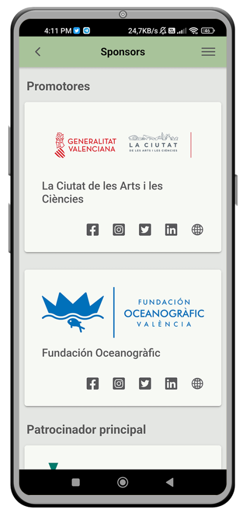 Conoce las organizaciones colaboradoras del proyecto y accede a sus datos de contacto, como redes sociales, vídeos promocionales y sitios web. Podrás conectarte con ellos y formar parte de una comunidad dedicada a la conservación marina.