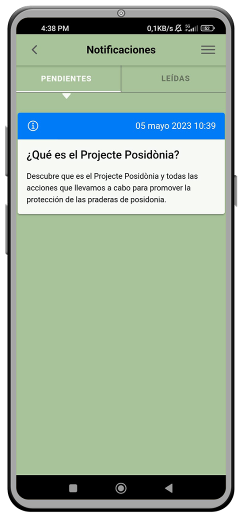 Projecte Posidonia te mantiene informado en todo momento con notificaciones en tiempo real sobre temas de conservación marítima de interés. De esta manera, podrás estar al tanto de las últimas novedades y contribuir a la protección marina.