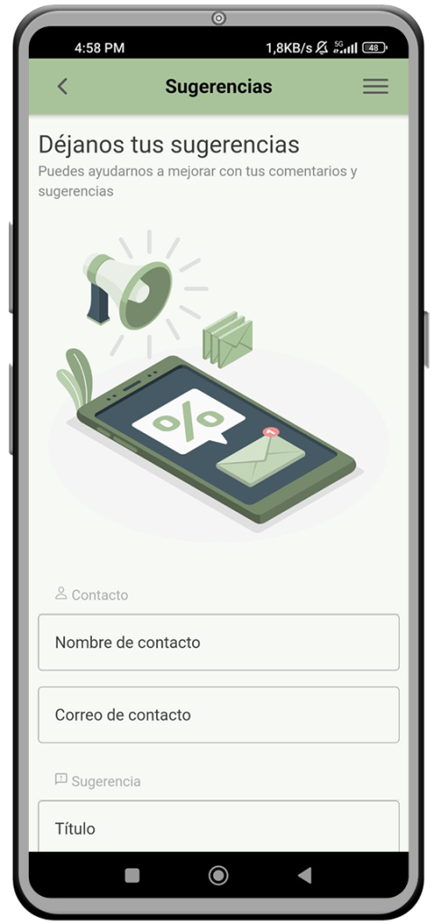 Queremos que nuestra aplicación sea la mejor para ti, por eso ofrecemos un canal de escucha activa. Puedes proporcionar sugerencias directamente a los desarrolladores de la aplicación para incluirlas en el proceso de mejora y desarrollo, haciendo de la aplicación un proyecto colaborativo con un canal de escucha activa para sus usuarios finales.